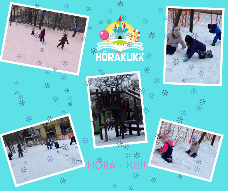 Hosszú évek után az első hó most a téli szünetben érkezett, így a gyerekek arcán megjelenő megható, tiszta, örömöt, ahogy rohannak sikítva az ablakhoz, lelkendezve az első pelyhek láttán, végre a szülők is megélhették, aminek nagyon örültünk. Aztán visszatértek a hétköznapok, de a csodálatos fehérség velünk maradt. Így a sok-sok csésze- és kapuvonal, a sakktábla nagyátlói, a “kacsacsőr” forgolódása, a rakoncátlan cipőfűzők és a fekvő nyolcasok kézzel-lábbal rajzolása mellett minden délután jut idő élvezni ezt az idei csodálatos telet.